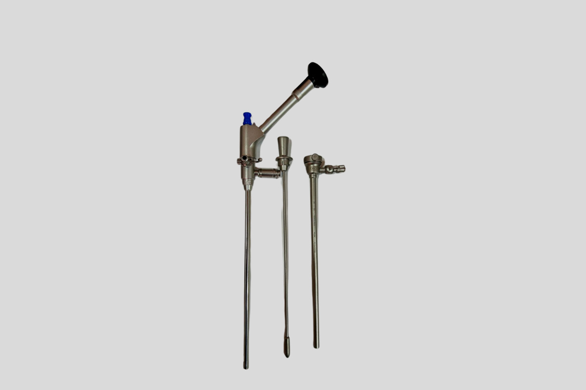 Equipamento essencial para ressecções transuretrais (RTU), utilizado em tratamentos como hiperplasia prostática benigna (HPB) e tumores de bexiga. Inclui componentes como eletrodos, bainha e alça de ressecção. Sistema de irrigação contĂnua para melhor visibilidade. CompatĂvel com geradores de energia monopolar ou bipolar. Alta precisĂŁo em cortes e coagulação.Resektoskop-Set 26Fr